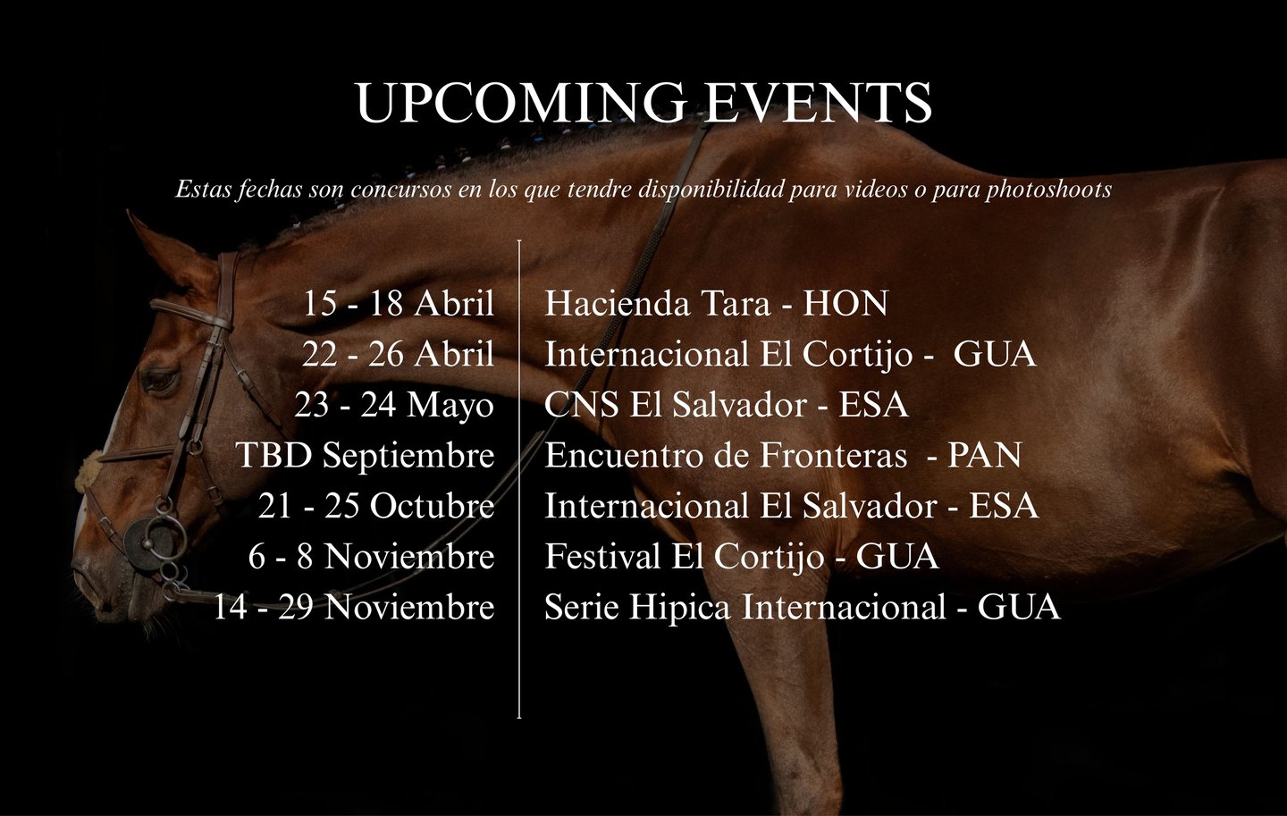 I'm always open to invitations to National Shows or private shoots around Central America, consider contacting me for more information below!