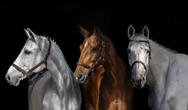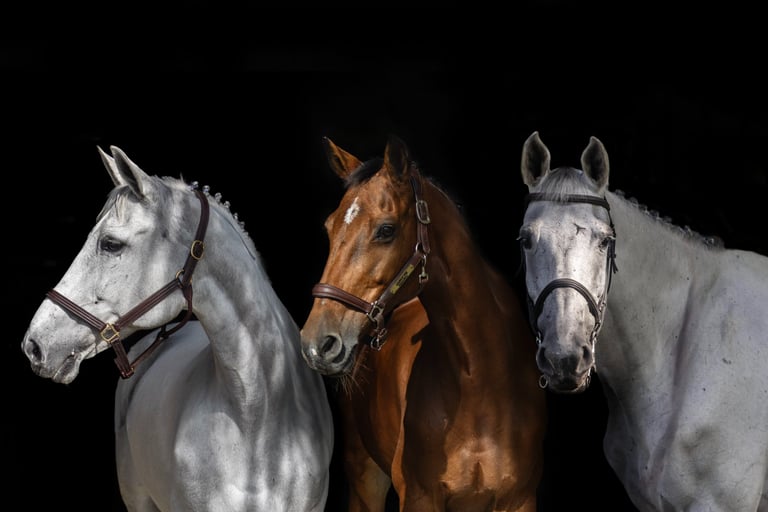 A luxury collection of head, full body and both horse and rider shots. Capturing the most artistic side of your horse(s) (and you) on a white or black background. Multiple tack changes. For 1-3 Horses, Compositions for multiple horses avaiable.